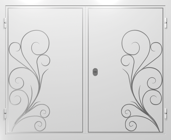 Двупольные глухие стальные ставни с ковкой и широкими створками